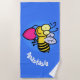 Cute funny bee with heart cartoon illustration beach towel