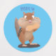 This happy hungry chipmunk has a full mouth of food. Drawn in funny cartoon illustration style.