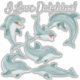 Funny dolphin/ocean life stickers with 6 happy dolphins and text, "I love dolphins." These cute stickers come in a variety of sizes and are perfect for water bottles, phone cases, helmets, bikes, skateboards, notebooks, laptops, or anything else you can imagine.