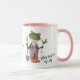 Cute Funny Frog Gardening Personalised Name Coffee Tea Mug features a funny cartoon of a frog gardening with the text "getting back to my roots" in modern script. Personalised with your custom name by editing the text in the text box provided. Perfect gifts for Christmas, birthday, gardeners, Mother's Day, Father's Day and more. Designed by ©Evco Studio www.zazzle.com/store/evcostudio