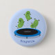 Cute funny green beans on trampoline cartoon 6 cm round badge
