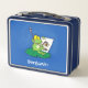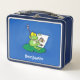 Cute funny green frog cartoon illustration metal lunch box