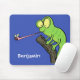 Cute funny green happy chameleon lizard cartoon mouse pad