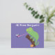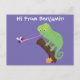 Cute funny green happy chameleon lizard cartoon postcard
