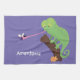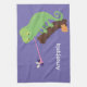 Cute funny green happy chameleon lizard cartoon tea towel