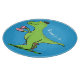 Cute funny green t rex dinosaur cartoon cutting board