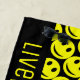 Cute Funny Happy Yellow Smiling Faces Pattern Unique Black and Yellow Beach Towel with custom text, Live, Laugh, Be Happy, for Happy Summer Times :-)