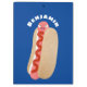 This funny hot dog is ready with ketchup for lunch! Drawn in cute cartoon style.