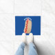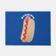 This funny hot dog is ready with ketchup for lunch! Drawn in cute cartoon style.