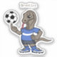 This happy Komodo dragon is playing soccer! Drawn in fun cartoon style.