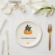 Cute Funny Little Pumpkin on Way Black Cat Paper Plate