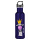 A water bottle with a whimsical llama blowing a pink bubble while chewing gum. Wearing a gold crown and a black bow tie. This cute lama is visible from the neck up and has a unique sparkling personality.