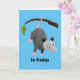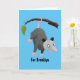 Cute funny opossum hanging from branch cartoon card