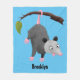 Cute funny opossum hanging from branch cartoon fleece blanket