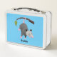 Cute funny opossum hanging from branch cartoon metal lunch box