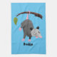 Cute funny opossum hanging from branch cartoon tea towel
