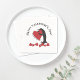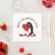 The product design features a penguin holding a big red heart. This charming animal illustration makes cute funny and unique paper napkins with personalised text for Valentine’s Day - Happy Valentine's Day!