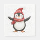 cute funny penguin in scarf and hat for winter holiday Christmas and New Year with text "Happy Holidays"