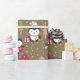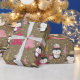 Cute penguins with colourful winter hats are cheerfully waving and holding presents as the snow falls against a neutral background with pink Christmas trees. Very cute paper for any kid's Christmas or holiday gift.