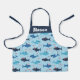 Cute funny sharks with pirate hats on blue apron