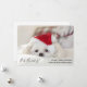 Funny Christmas card greetingwith an adorable photo of a cute white doggy wearing a red christmas hat. This cute little puppy looks worn out and bored from all the Christmas festivities.