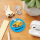 This funny yellow bulldozer eats dirt! Drawn in happy cartoon illustration style with tongue and eyes to create a cute character for the budding construction worker!
