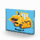 Cute funny yellow bulldozer cartoon character photo block