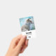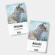 Name tag with a photo of a cute fox standing alone.