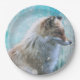 Cute Furry Fox on Blue Grunge Background Paper Plate