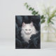 Cute Furry White Cat Sitting Among The Leaves Postcard