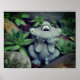 Cute garden frog ornament among hens and chicks succulents. Photography by Susan.