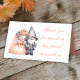 Show your appreciation with this adorable gnome wedding thank-you place card, featuring a whimsical watercolor illustration of a cheerful gnome bride and groom. The bride looks stunning in a flowing gown adorned with soft orange hues and a floral crown, while the groom appears dapper in a grey suit and his signature pointed hat. This enchanting design is perfect for rustic, bohemian, woodland, or fairy tale-themed weddings.