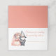 Guide your guests to their seats with this adorable gnome wedding table escort card, featuring a whimsical watercolor illustration of a joyful gnome bride and groom. The bride wears a flowing gown with soft orange hues, adorned with a floral crown, while the groom looks dapper in a grey suit and signature pointed hat. This enchanting design is perfect for rustic, boho, woodland, or fairy tale-themed weddings.