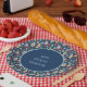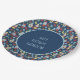 Create custom party supplies that are perfect for gnome-themed birthday parties. These cute paper plates have a pattern of garden gnomes and flowers in red, yellow, light blue and green set against a navy blue background. Your own custom message appears in the centre of the plate.