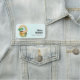 A name tag with an adorable illustration featuring a smiling green and gold pot with a cute rainbow,