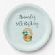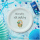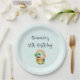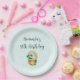 Paper plates with an adorable illustration featuring a smiling green and gold pot with a cute rainbow,