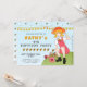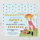 Cute Gardening Girl with Flowers Birthday Invitation. A drawing of a girl with flowers in a watering can with yellow glitter stars and sunflowers. On the backside is a sunflower pattern. Add your text and make a fun birthday invitation for the girl.