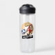 A cute gecko soccer player on a water bottle. Use "Personalise this template" to add your own text and create a unique, customised gift; text changes are reflected on both sides. Quench your thirst during the match or in training with this bottle, featuring a gleeful gecko in red soccer kit, dribbling a football.