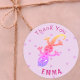 This sticker comes with cute little rainbow gecko lizard on a pink background, text Thank you and a kids name. It`s perfect for children celebrations. You can personalise the sticker by changing the name and also change the font, size and the colour of the text.