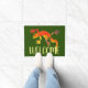 Welcome mat with colourful gecko cute lizards original Australian art illustration by artist Sacha Grossel featuring these cute reptiles on an eco green simple natural background. Colourful and vibrant. Perfect for a nature or wildlife lover.