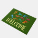 Welcome mat with colourful geckos cute lizards original Australian art illustration by artist Sacha Grossel featuring these cute reptiles on an eco green simple natural background. Colourful and vibrant.