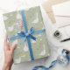Cute Geese and Footprint Pattern on Sage Green Wrapping Paper