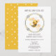Cute Gender Reveal - What Will Baby Bee? Baby Shower with bumble bee detail - a delightful watercolor bumble bee on a honeycomb background - designed with a spotty yellow and white back detail - Baby Shower invitation .. simply fill in your details on this customisable invite to personalise to suit your requirements .. baby products from Ricaso