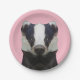 Bring playful personality to the table with these modern geometric badger paper plates, showcasing a friendly low poly badger face on a cheerful pink background. Customise the background colour to match any theme perfect for animal loving events, woodland picnics, or quirky party decor with easy cleanup. The bold, fun design delights kids and adults alike while tying together a cute animal themed celebration.