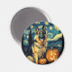 Cute German Shepherd Dog Halloween Jack O Lantern Pumpkin Face Starry Night Van Gogh Style