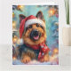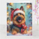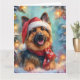 A cute and adorable Christmas watercolor scene with a sweet German Shepherd wearing a Santa hat and red scarf in a dreamy Christmas winter wonderland. Includes an original funny Christmas message that dog lovers are sure to love.