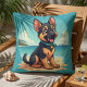 Cute German Shepherd Puppy Beach Illustration Cushion