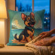 This adorable German Shepherd puppy design captures the essence of carefree summer days with its bright, cheerful expression and stunning tropical backdrop. Set against a serene ocean view with palm trees swaying in the breeze, this artwork radiates adventure and joy. The warm golden tones of the sand contrast beautifully with the deep blues of the sea and sky, creating a harmonious, visually captivating scene. Perfect for dog lovers, beachgoers, and those who appreciate playful yet artistic illustrations, this piece blends coastal aesthetics with a lively cartoon charm. The energetic pose and expressive eyes of the pup embody excitement and curiosity, making it a delightful addition to any collection celebrating pets, summer, or wanderlust. Whether you're drawn to vibrant pet artwork, ocean sunset aesthetics, or simply love a happy cartoon pet, this design brings a splash of tropical fun to any space. AI generated artwork.