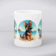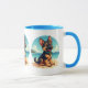 This adorable German Shepherd puppy design captures the essence of carefree summer days with its bright, cheerful expression and stunning tropical backdrop. Set against a serene ocean view with palm trees swaying in the breeze, this artwork radiates adventure and joy. The warm golden tones of the sand contrast beautifully with the deep blues of the sea and sky, creating a harmonious, visually captivating scene. Perfect for dog lovers, beachgoers, and those who appreciate playful yet artistic illustrations, this piece blends coastal aesthetics with a lively cartoon charm. The energetic pose and expressive eyes of the pup embody excitement and curiosity, making it a delightful addition to any collection celebrating pets, summer, or wanderlust. Whether you're drawn to vibrant pet artwork, ocean sunset aesthetics, or simply love a happy cartoon pet, this design brings a splash of tropical fun to any space. AI generated artwork.