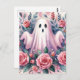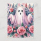 This postcard features watercolor artwork of an adorable ghost surrounded by pink roses and greenery, blending Halloween fun with romantic floral beauty. Great for Halloween lovers who prefer a softer aesthetic, floral art fans, and those who enjoy cute gothic designs.